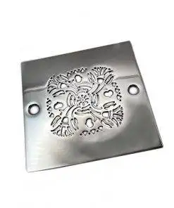 Shower Grate Measures 4-3/16 Inch Square with 3-3/8 Inch center-to-center screw inserts.