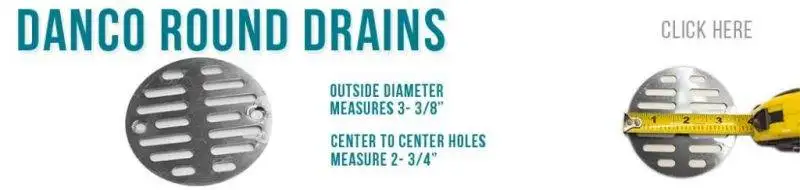 A 3-3/8 inch decorative shower drain cover is a replacement for the Danco Drain.