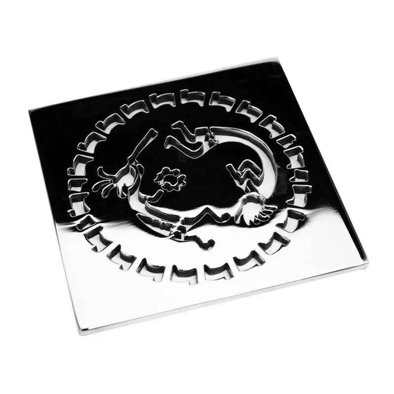 Kokopelli, Square Shower Drain Cover, Polished Stainless by Designer Drains