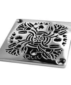 Square Shower Drain, 3.875 Inch Grate, Moresque No. 1 Design