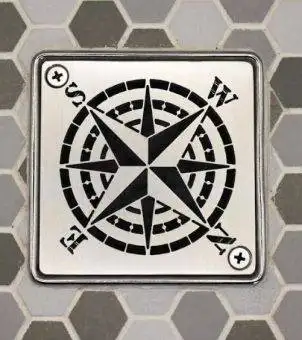 Compass Rose Schluter installed in rough-in brushed stainless steel