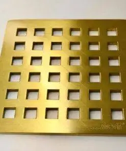 Clearance Square Shower Drain – 4 Inch Brushed Brass – Scrolls No. 4