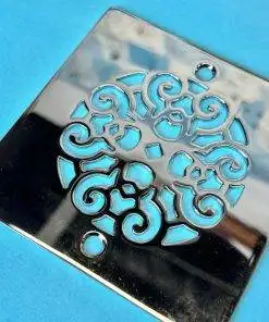 4 Inch Square Drain, Scrolls No. 4, Polished Chrome (Clearance)