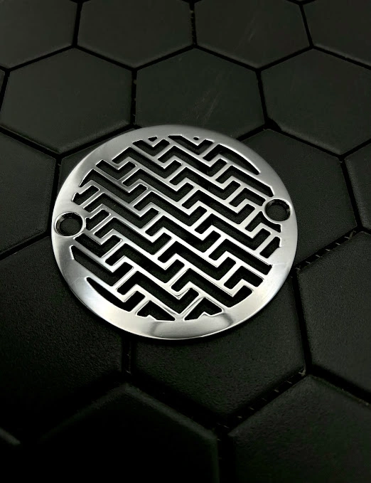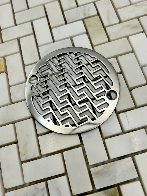 3.25 Inch Round Shower Drain Cover | Geometric Herringbone