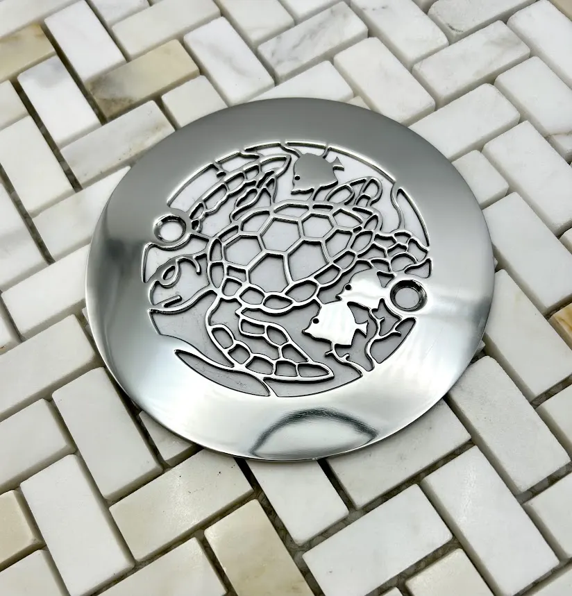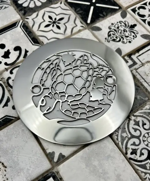 4.25” Round Shower Drain Cover – Sea Turtle Design | Stainless Steel | Designer Drains