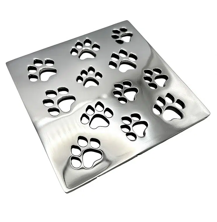 Replacement WEDI® Square Shower Drain Cover – Dog Paws Design 3.5″ Stainless Steel Pressure‑Fit Drain Grate