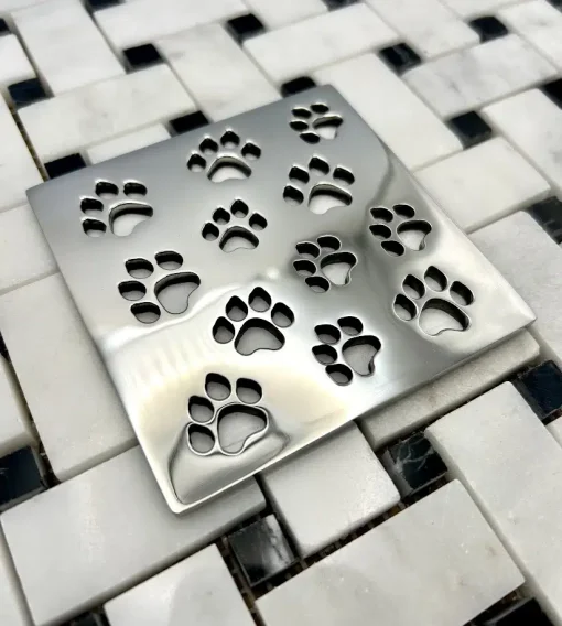 Replacement WEDI® Square Shower Drain Cover | Dog Paws Design