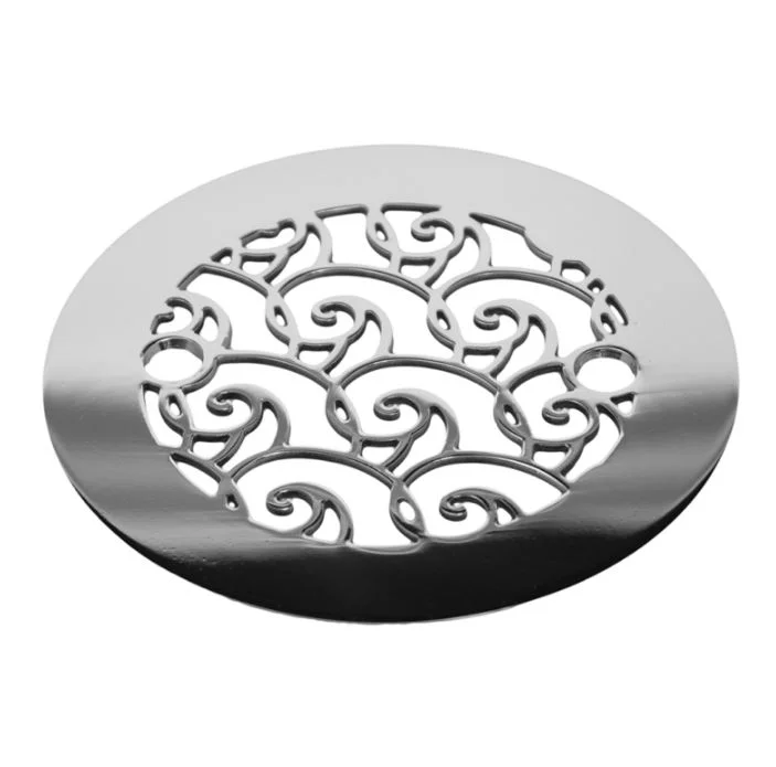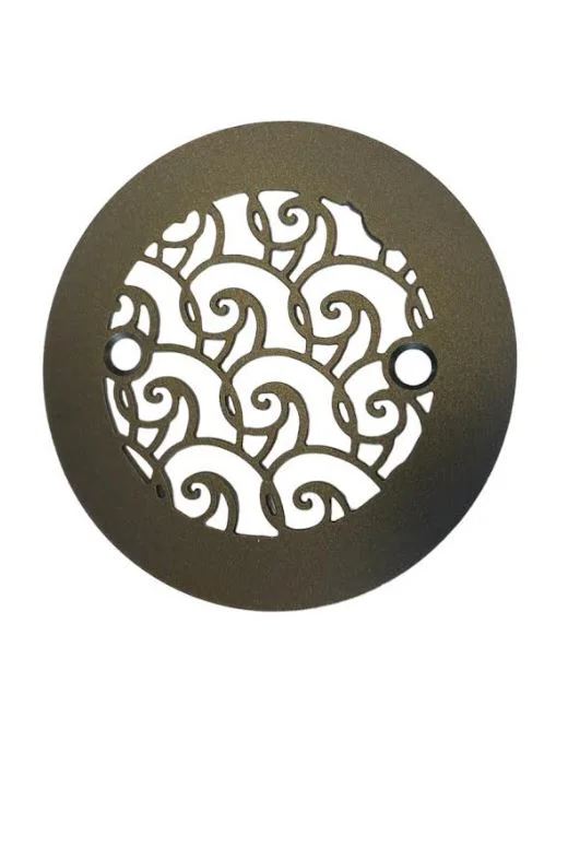 Decorative 4.25 inch round shower drain cover, Waves design by Designer Drains