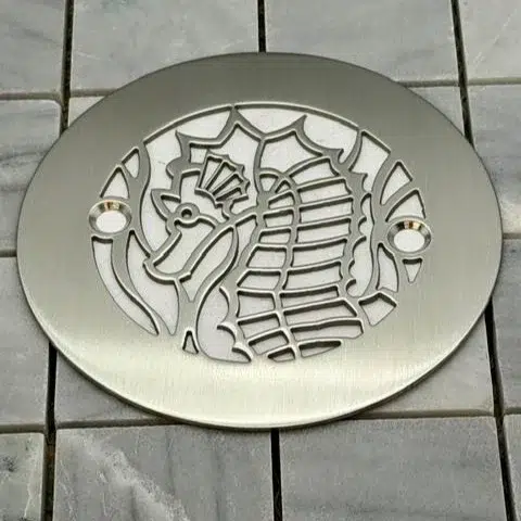 Shower Drain, 4.25 Inch Round, Seahorse by Designer Drains