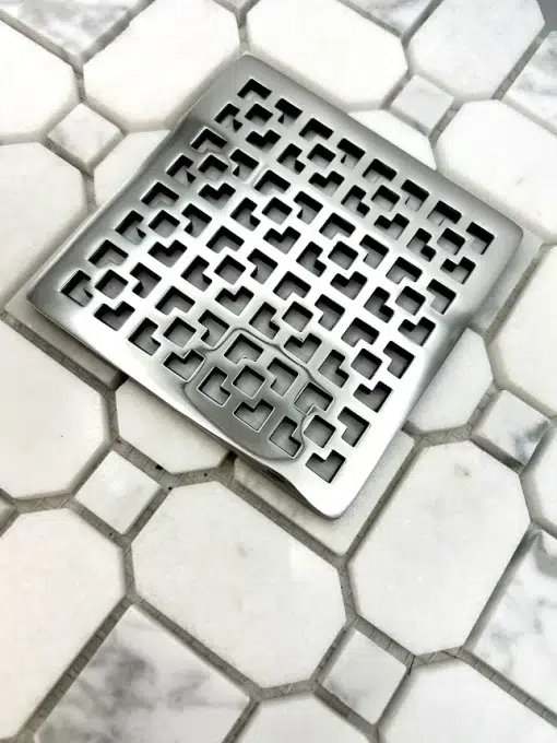 Square Shower Drain, 4.25 Inch Square, Geometric No.3 Design