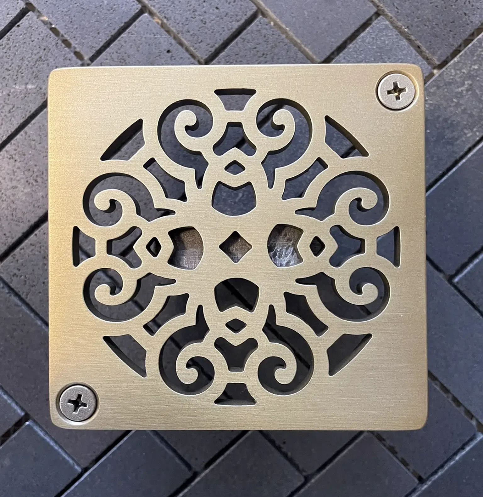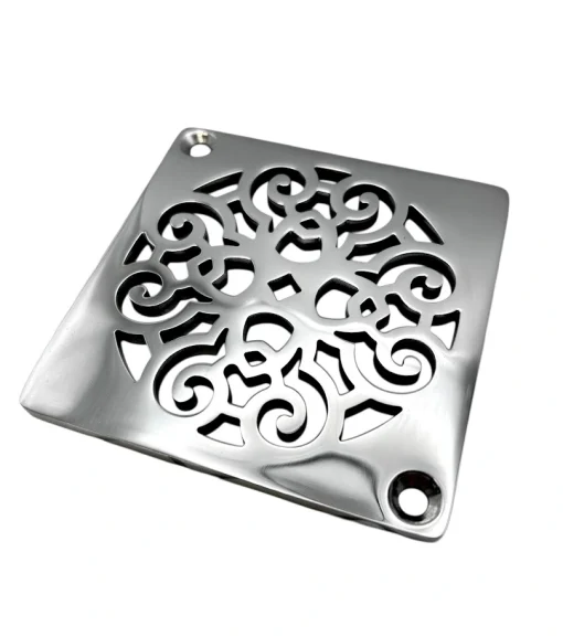 Square Shower Drain, Made To Fit Schluter-Kerdi, Scrolls No. 4
