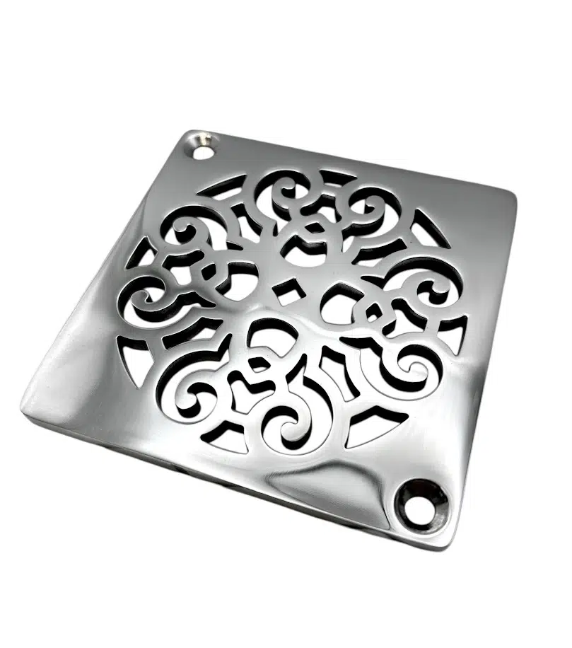 Square Shower Drain Cover – Classic Scrolls No. 4 Design | Fits Schluter-Kerdi | Designer Drains